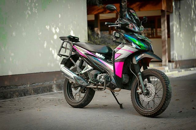 Keren banget sob sepeda motor blade modiffan pada gambar diatas. Adapun sajian warna yg ada pada motor blade diatas ialah warna hitam dan hijau. Terlihat pada sepeda motor tersebut memiliiki dua warna sahaja yakni hitam dan hijau muda pada bagian body dan juga velg roda, knalpot racing, shock belakang warna merah menyala, standart pijakan warna gold, hiasan stiker dan masih banyak lainnya. Bagi kalian yg sedang mencari konsep modiffan agar motor terihat mencolok dan keren, maka konsep modiffan motor diatas lah yg kalian perlukan ya sob.