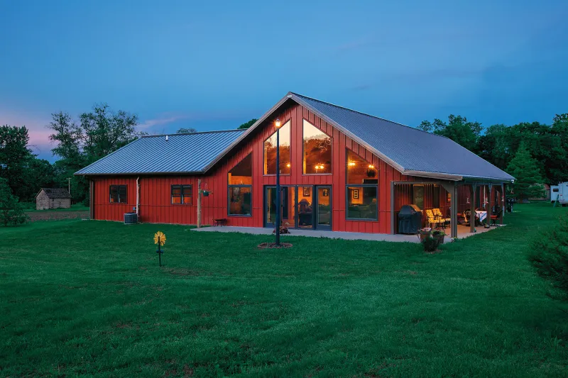 Tampak pada gambar diatas design rumah rangka besi liter L yg hadir denngan warna merah maroon yg mencolok lengkap dengan model atap segitiga dikedua bagian sob. Sekiranya tampilan rumah rangka besi pada gambar terlihat aesthetic dan keren parah sob. Buat kalian yg sedang mencari design rumah rangka besi dengan tampilan keren dan menonjol, maka desain yg kalian cari tersebut ada pada gambar diatas.
