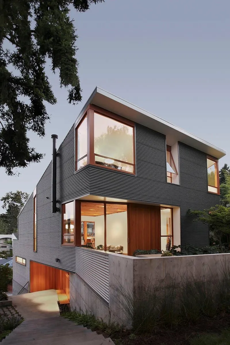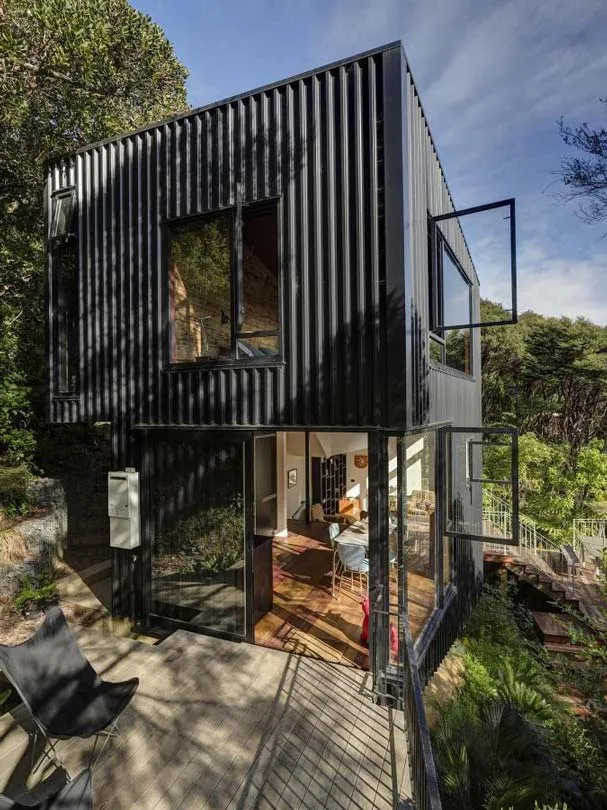 Tampak pada gambar diatas desain rumah lantai dua yg terbuat dari rangka besi  bewarna hitam pada gambar diatas sob. Tak apa sob bila kalian memiliki lahan yg tak terlalu luas, tetap sahaja loh sob kalian dapat untuk membangun  rumah rangka besi yg sama persis dengan yg ada pada gambar diatas.