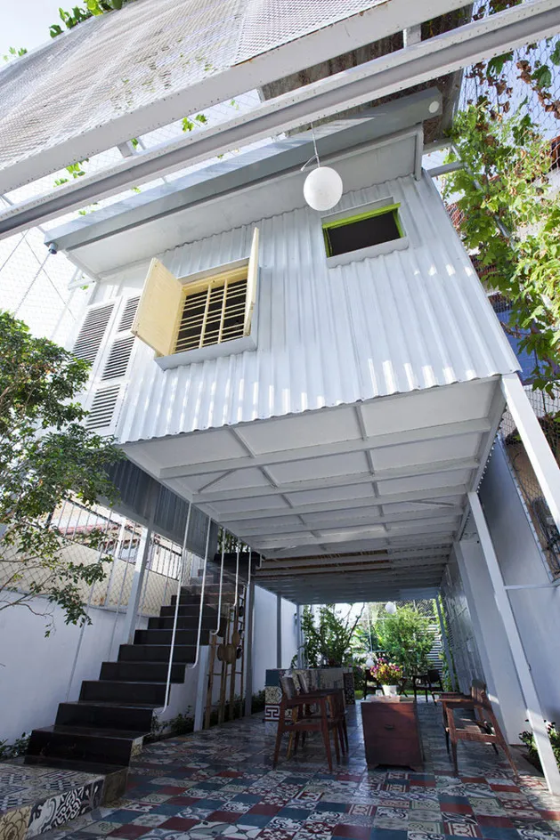 Unik dan menarik ialah dua kata yg menggambarkan design rumah rangka besi pada gambar diatas. Seperti yg kalian lihat, rumah diatas hadir dengan bagian atas  dibuatkan ruangan kamar yg tutup dengan penghubung tangga pada bagian samping dan pada bagian bawahnya dapat dijumpai ruang santai yg syahdu banget sob.