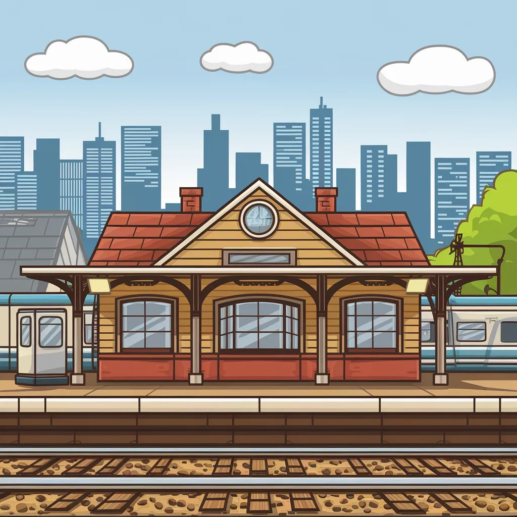 12. Stasiun Kereta Api dengan Latar Belakang Kota