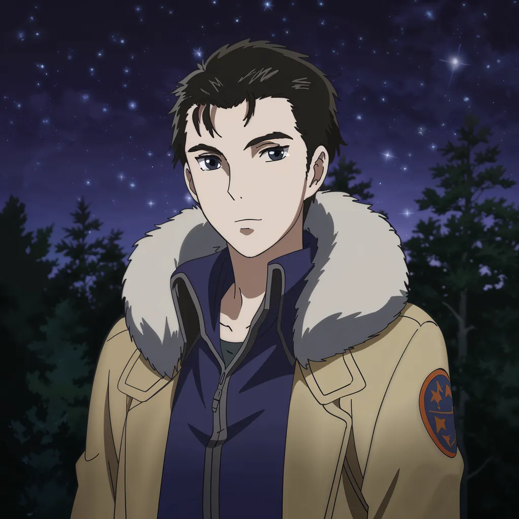 Gambar karakter anime melihat bintang di langit malam, menciptakan suasana tenang dan penuh harapan.