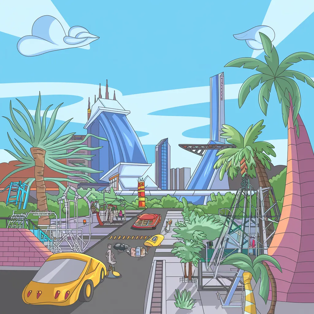 Gambar kota futuristik dengan lampu neon, gedung pencakar langit, dan jalanan yang sibuk, menampilkan dunia yang penuh teknologi.