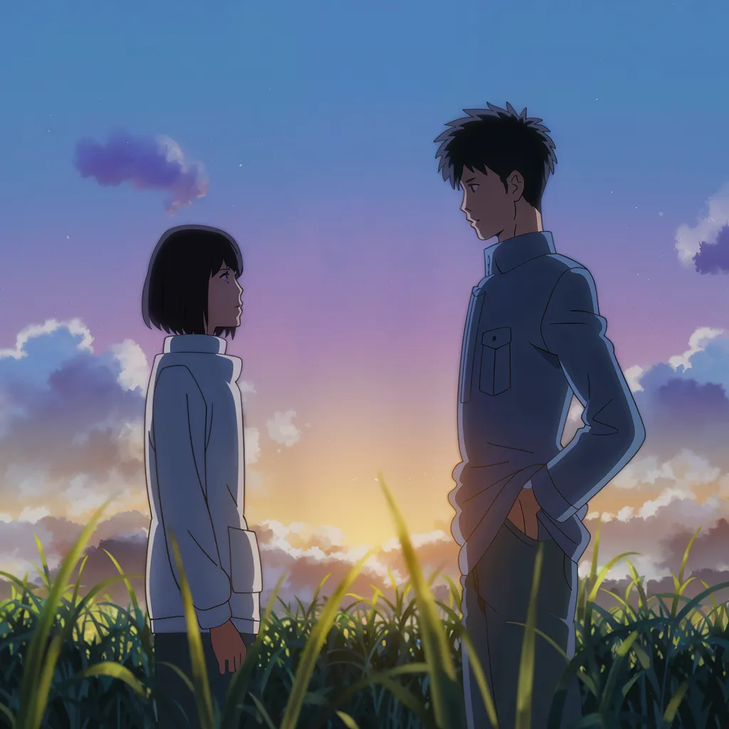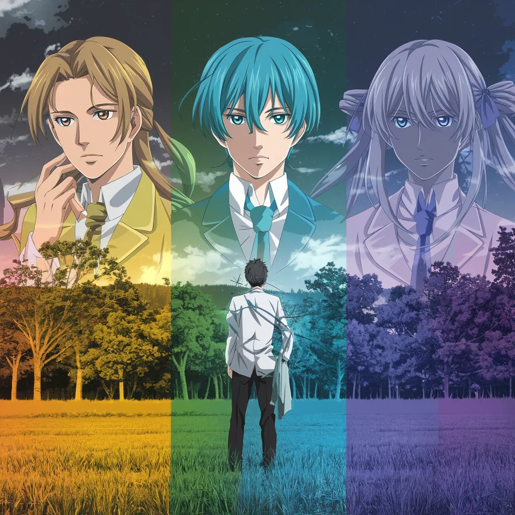 Ilustrasi karakter anime dengan latar belakang gradasi warna yang indah, menambah kedalaman dan estetika visual.