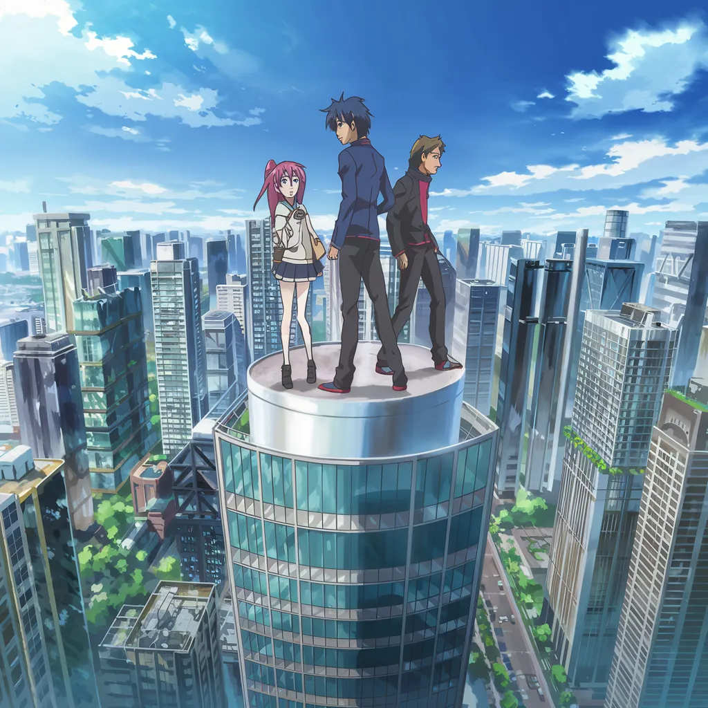 Ilustrasi karakter anime berdiri di atas gedung tinggi dengan pemandangan kota yang luas di bawahnya, menciptakan kesan kebebasan.