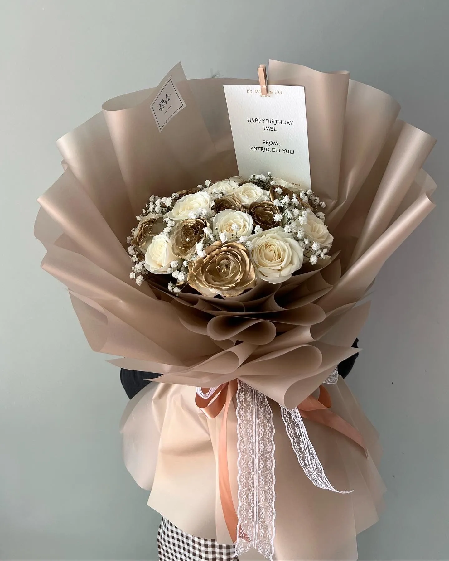 Pilih bunga-bunga yang memiliki simbolisme cinta, seperti mawar merah yang melambangkan cinta mendalam, atau bunga lily putih yang melambangkan kemurnian dan keabadian cinta. Ini akan memberikan dimensi makna yang mendalam dalam hadiah Anda. Bunga-bunga dengan aroma lembut seperti mawar atau bunga lily dapat menghadirkan aroma yang menyentuh hati dan mengingatkan penerima pada momen indah bersama.