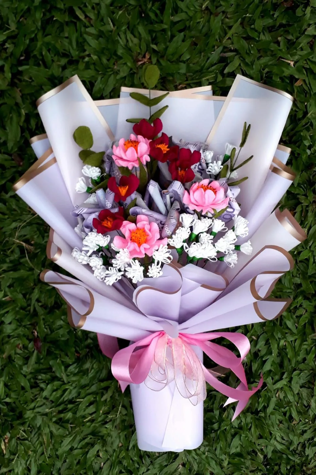Tidak hanya bunga, Anda dapat menambahkan aksesoris seperti pita satin, pita rafia, atau bahkan hiasan berbentuk hati untuk meningkatkan nuansa romantis dalam bucket bunga. Aksesoris ini memberikan sentuhan istimewa dan menghadirkan ciri khas cinta.