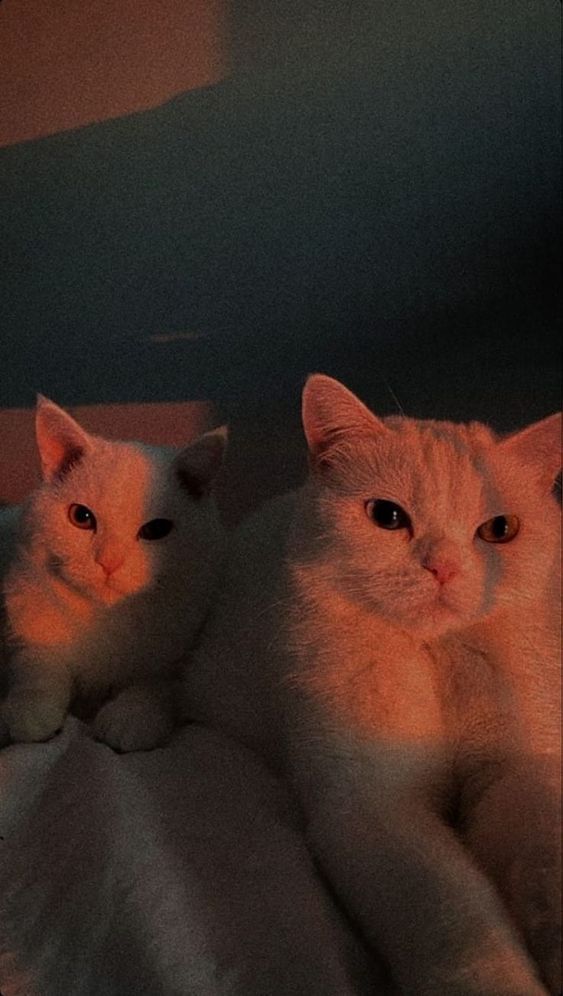 Gambar tersebut menghadirkan kesan kedamaian dan keintiman antara dua ekor kucing dalam momen senja yang indah. Di tengah gambar, terdapat dua ekor kucing yang duduk santai di atas tempat tidur. Cahaya matahari terbenam yang sedikit menerpa pada mereka menciptakan suasana yang penuh pesona dan kehangatan. Suasana matahari terbenam memberikan nuansa yang lembut dan romantis.