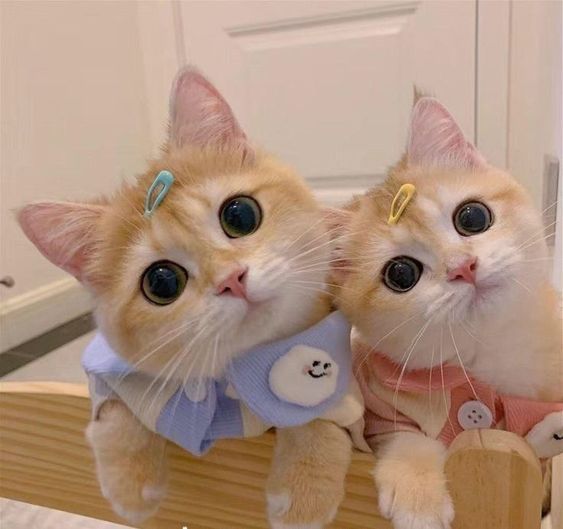 Tampilan gambar dengan dua anak kucing lucu dan imut berwarna putih dan jingga, mengenakan baju, dengan raut wajah yang penasaran, dapat menimbulkan berbagai kesan yang menggemaskan dan menghibur.  Kesan utama dari gambar ini tentu adalah keimutan yang ditampilkan oleh dua anak kucing tersebut. Raut wajah penasaran dan pakaian yang dikenakan semakin memperkuat kesan imut mereka.