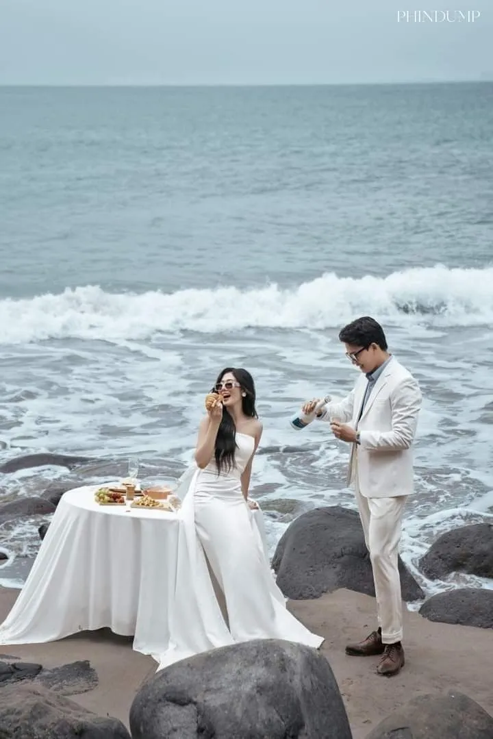 Kombinasi pantai yang bersih, bebatuan, dan tebing menciptakan kesan keindahan alam yang luar biasa. Foto prewedding ini bisa menjadi perpaduan antara keindahan alam dan kebahagiaan asmara. Tebing dan bebatuan memberikan kesan petualangan dan eksotis, seolah pasangan sedang menjelajahi tempat eksotis yang menyimpan keajaiban alam.