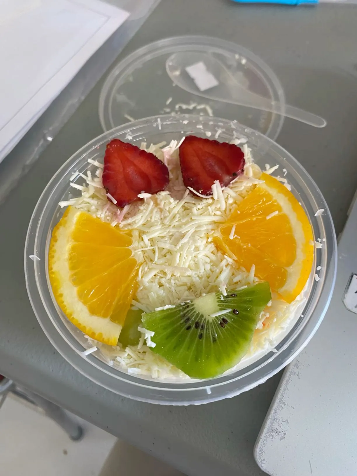 Aroma dan rasa segar dari buah-buahan dalam salad dapat memberikan sensasi menyegarkan dan meningkatkan mood. Konsumsi makanan yang nikmat dan bergizi dapat memberikan kepuasan psikologis dan emosional.