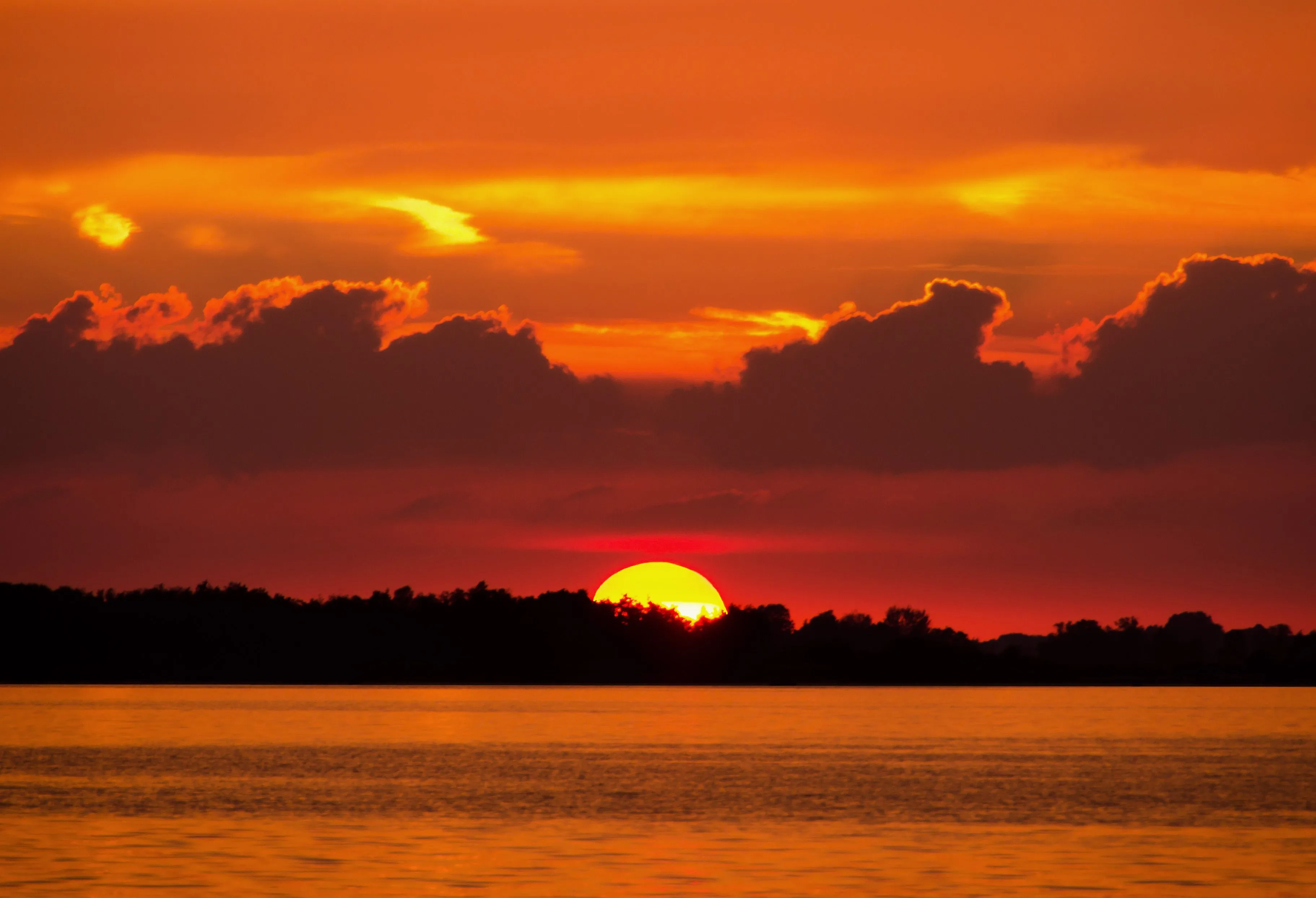 Terkadang, keindahan matahari terbenam terletak pada kesederhanaannya. Sebuah pemandangan yang indah dan tenang dapat dihasilkan oleh kombinasi langit yang berwarna-warni dan siluet alam.