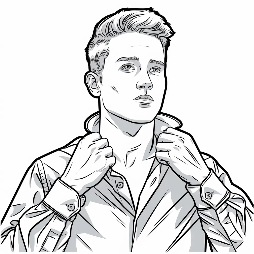 Ilustrasi pria memegang kerah baju, seakan mempersiapkan diri untuk sesuatu yang penting, tetap keren.