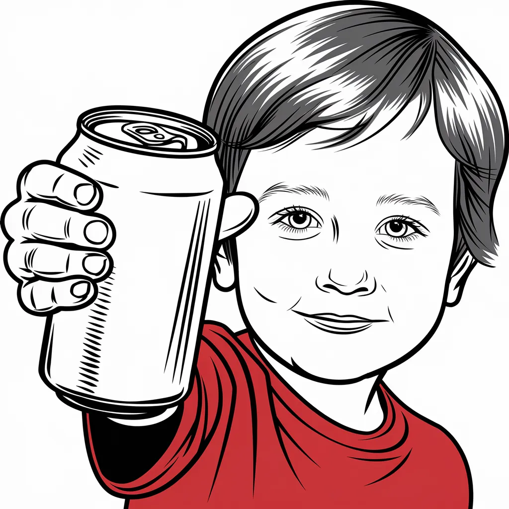 Gambar remaja laki-laki duduk di tangga, memegang kaleng soda yang hampir habis, menatap ke samping dengan cuek.