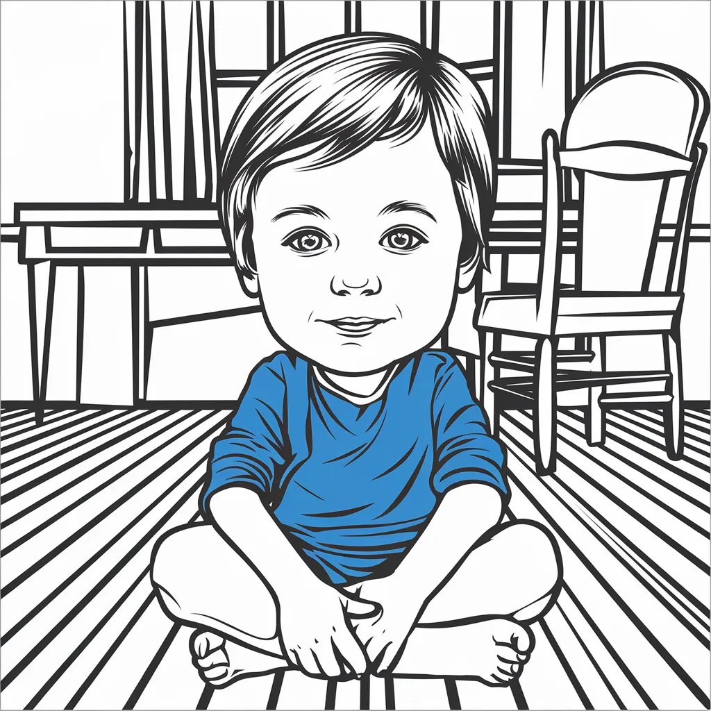 Ilustrasi pria dengan kemeja lengan digulung, duduk santai di lantai kayu sambil menghadap ke samping.