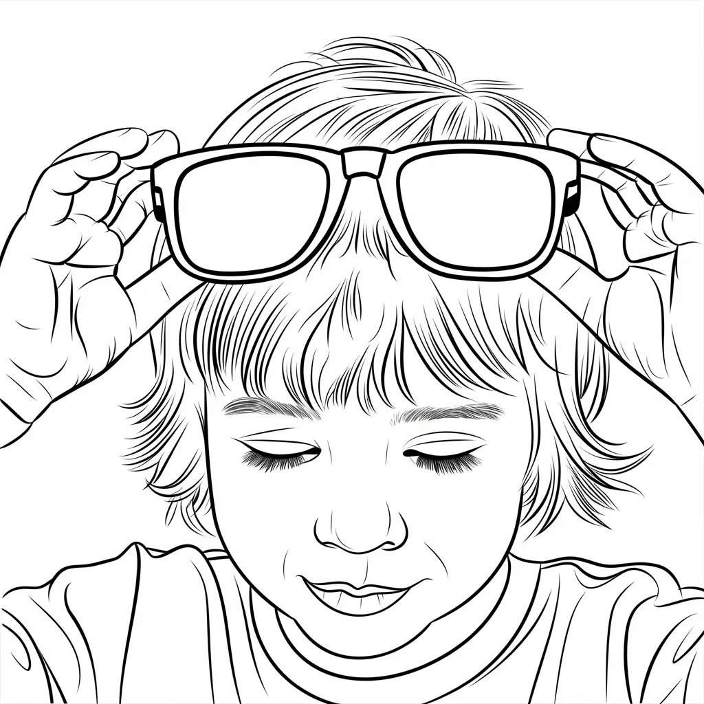 Ilustrasi pria berkacamata hitam yang diselipkan di rambut, ekspresi wajah datar tapi memberi kesan misterius.