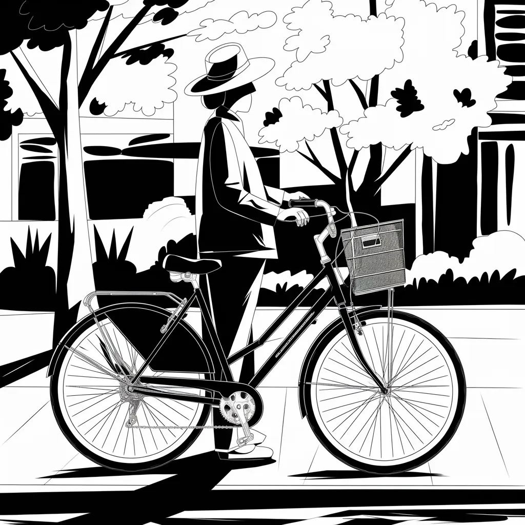 Ilustrasi pria dengan sepeda fixie di sebelahnya, tangan di saku, menatap kamera dengan tenang.