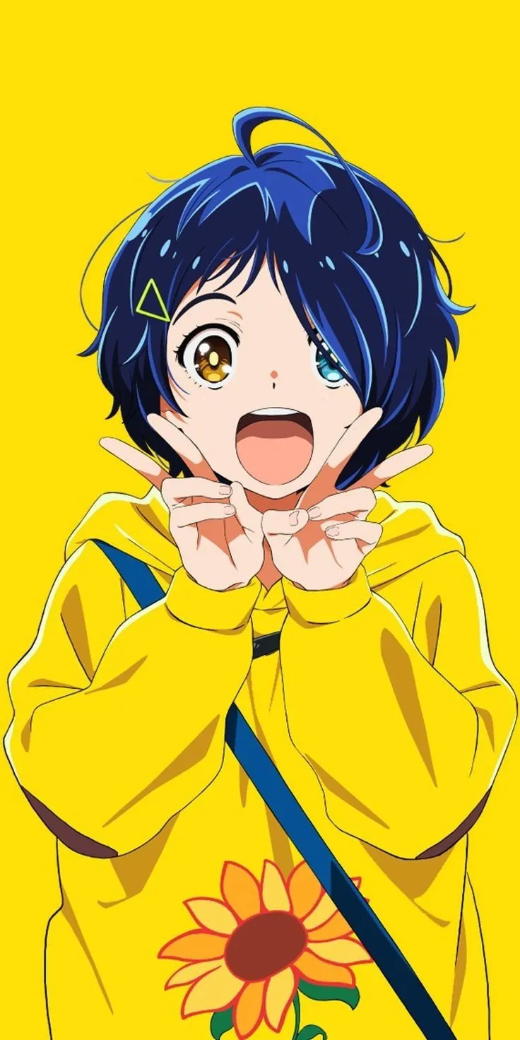 Kesan yang muncul dari tampilan gambar anime perempuan dengan mengenakan jaket warna kuning, rambut pendek warna biru, mata kuning dan biru serta wajah yang ceria adalah kesan yang menyenangkan dan cerah. Tampilan warna kuning pada jaketnya memberikan kesan ceria dan menyenangkan, sedangkan rambut biru dan mata kuning dan biru menambahkan kesan keunikan dan daya tarik. Wajah yang ceria juga menambahkan kesan positif dan menggambarkan karakter yang bahagia dan bersemangat.