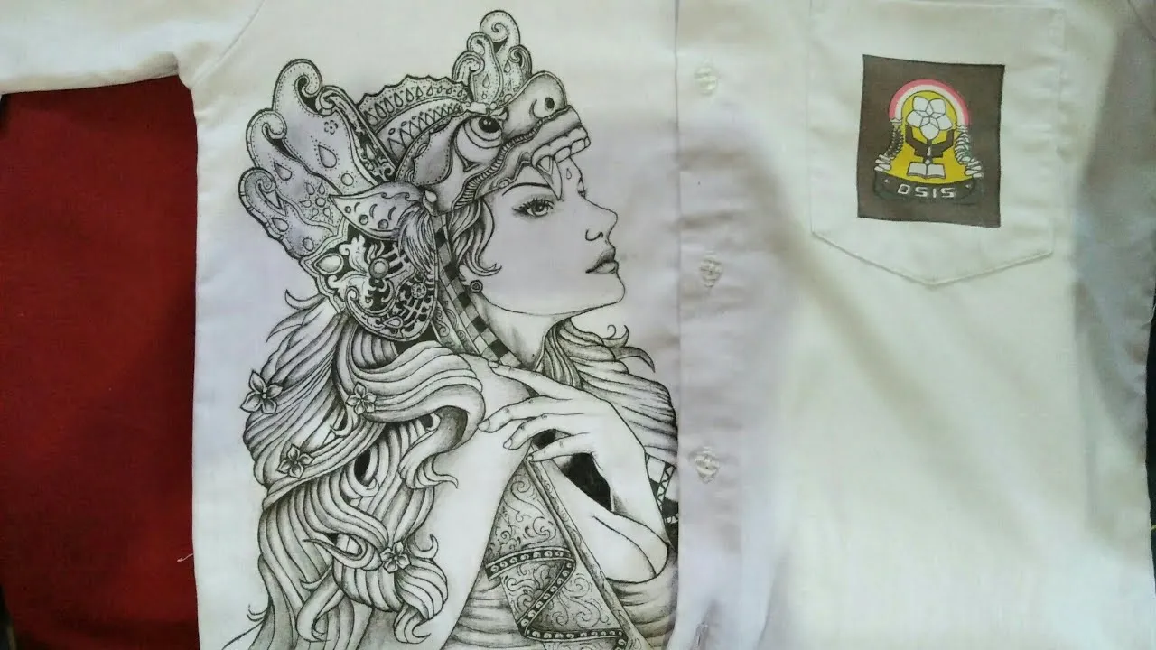Pada gambar berikutnya ini terdapat baju kelulusan dengan motif wanita cantik yg bercosplay menjadi penari jawa ,mimin salut banget pada orang yg dapat melukiskan motif seperti ini,lihat sahaja bagaimana detailnya hasil gambar yg ia lukis,keren banget sumpah.Gak habis pikir gitu dengan motif satu ini ,pasti kemampuan lukis orang tersebut sangat lah jago sekali ya guys.
