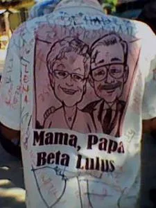 Berikut ini terdapat baju kelulusan dengan motif yg mimin pikir dapat menyentuh hati setiap orang yg melihatnya ,seperti yg kalian pada baju kelulusan yg mimin sajikan di bawah ini terlihat jelas motif gambar kedua orang tua dengan quote yakni “mama papa beta lulus”.Mimin pribadi sih sangat suka selai motif ini penuh makna motif gambar pada baju kelulusan dibawah ini,so buat kalian yg hendak mengahadirkan ceremony penuh makna pada hari kelulusan maka motif satu ini perlu untuk kalian gambar pada baju kelulusan kalian nantinya.