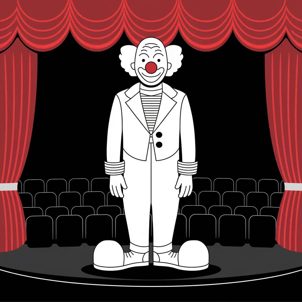 Pakaian badut berwarna-warni dengan aksesori lucu.
