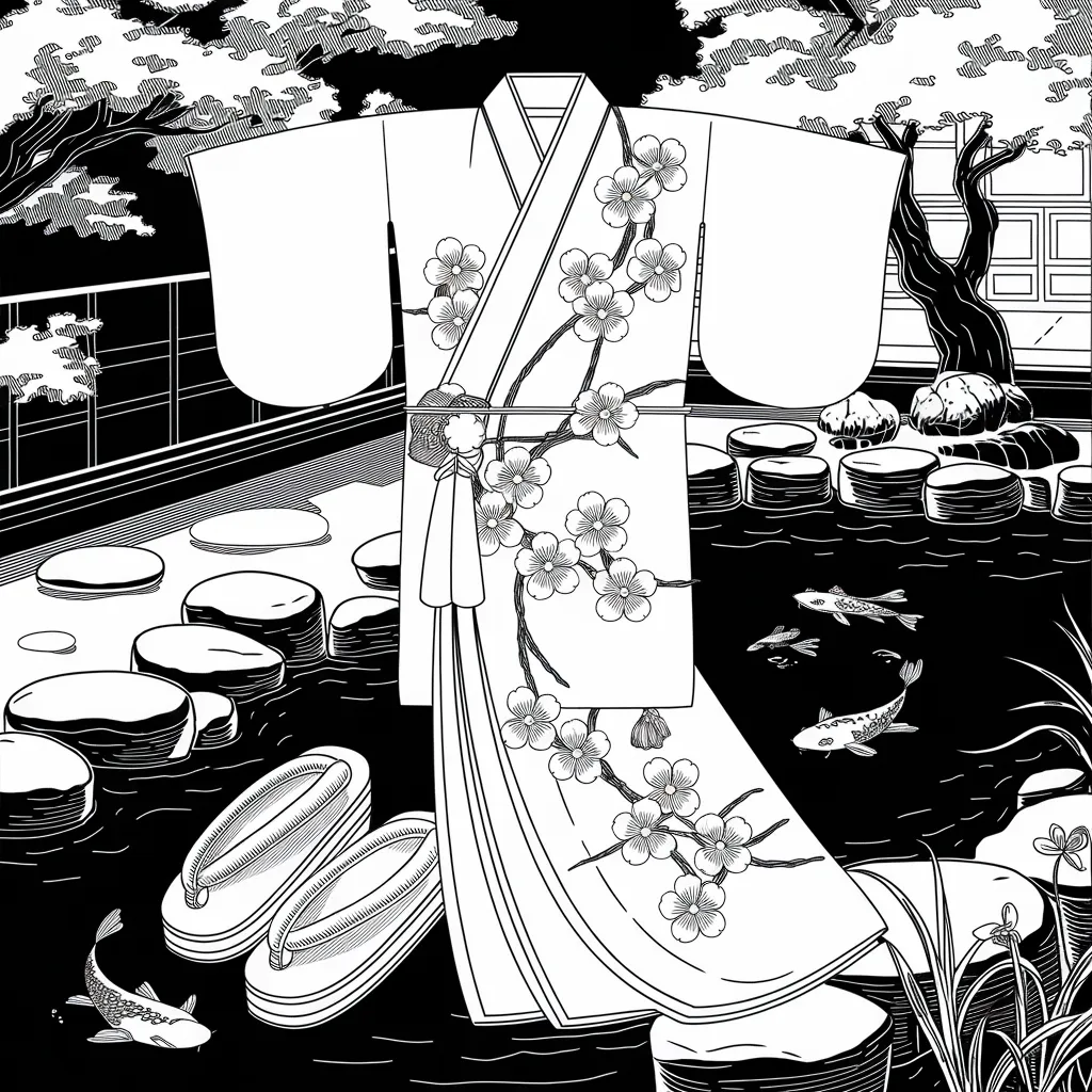 Pakaian tradisional Jepang dengan pola bunga sakura.