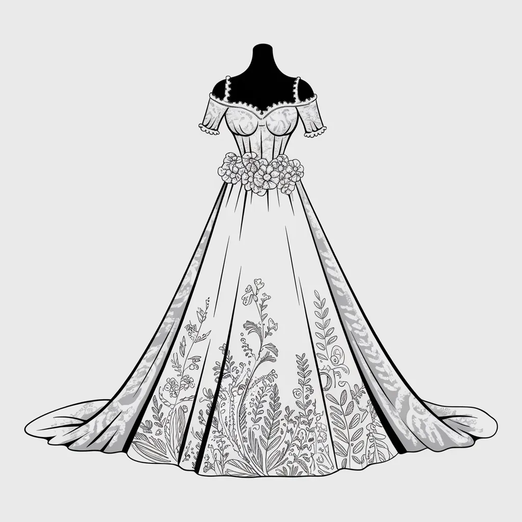 Gaun elegan dengan detail renda dan pita, cocok untuk dikreasikan dengan warna-warna cerah.