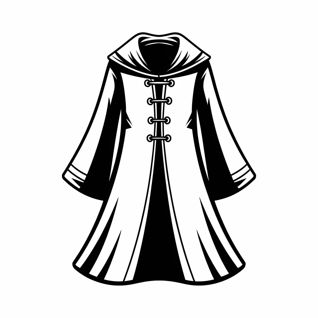 Jubah misterius dengan topi runcing dan tongkat sihir.