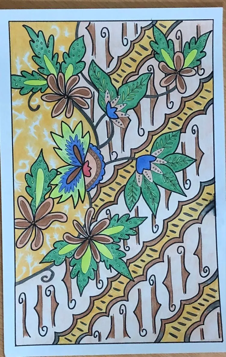 Motif bunga yang rumit juga dapat mencerminkan kreativitas dalam pemilihan dan kombinasi warna. Pemilihan warna yang harmonis dan kontras dapat menambah dimensi visual yang menarik pada karya batik. Selain itu, motif batik bunga dengan desain yang rumit adalah hasil dari kombinasi keterampilan, kesabaran, kreativitas, dan dedikasi yang tinggi dari seniman batik.