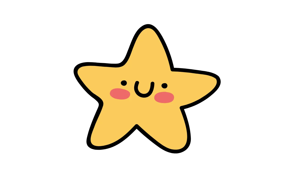 Gambar tersebut menciptakan kesan yang ceria dan menyenangkan dengan menggambarkan bintang warna kuning yang cerah. Bintang tersebut mungkin memiliki bentuk sederhana dengan beberapa sudut yang jelas, dan warna kuning yang cerah menambahkan keceriaan dan kehangatan pada gambar. Ekspresi wajah tersenyum pada bintang tersebut memberikan kesan positif dan ramah. Senyumnya yang mudah digambar memberikan kesan simpel namun menggambarkan kebahagiaan dan keceriaan.