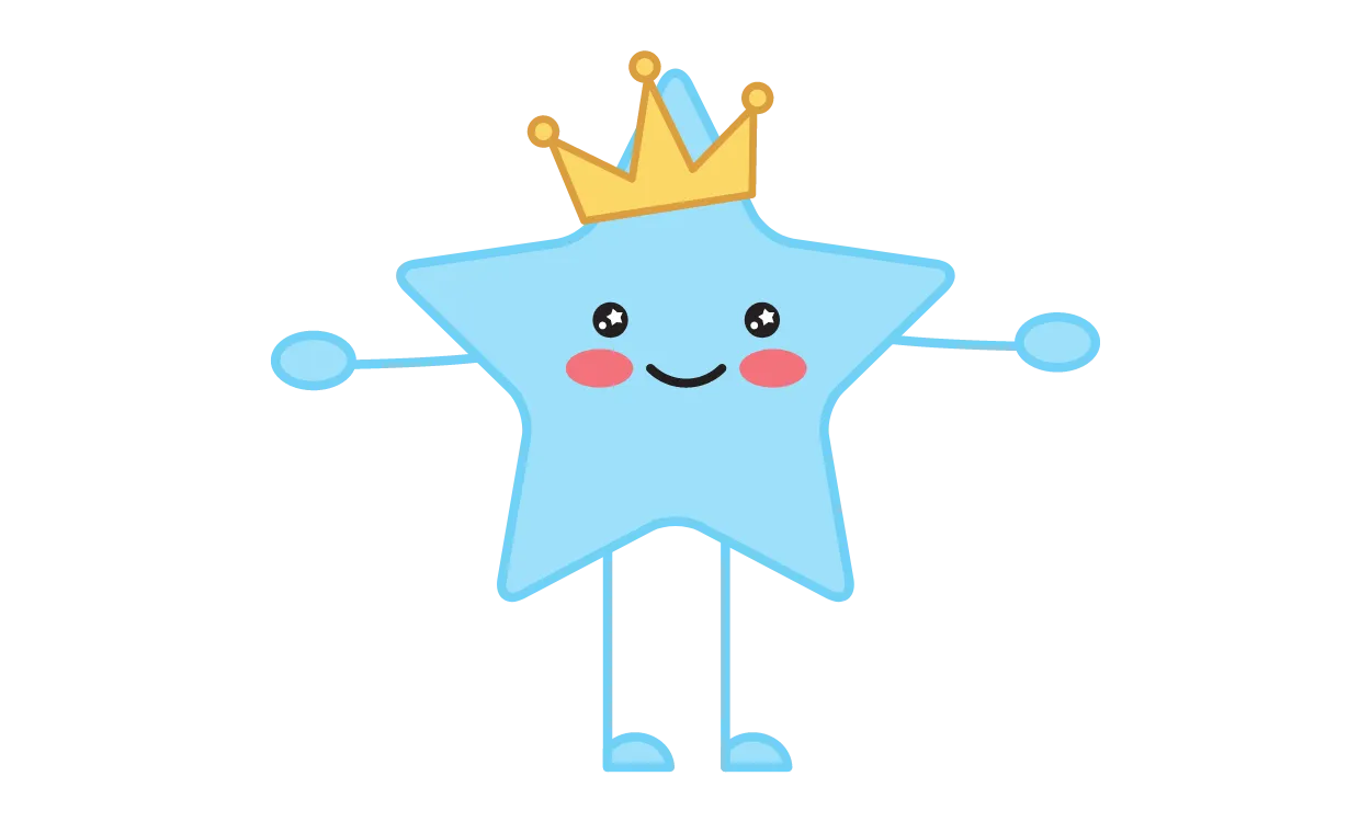 Gambar ini menciptakan kesan yang menggemaskan dan imajinatif dengan menggambarkan bintang dengan karakteristik yang unik. Bintang tersebut memiliki warna biru yang menarik dan tampak ceria dengan ekspresi wajah lucu yang membuatnya terlihat menggemaskan. Mahkota yang dikenakan oleh bintang tersebut menambahkan unsur kebangsawanan dan keistimewaan pada gambar. Mahkota tersebut dapat menjadi simbol kekuasaan atau keunikan bintang tersebut.