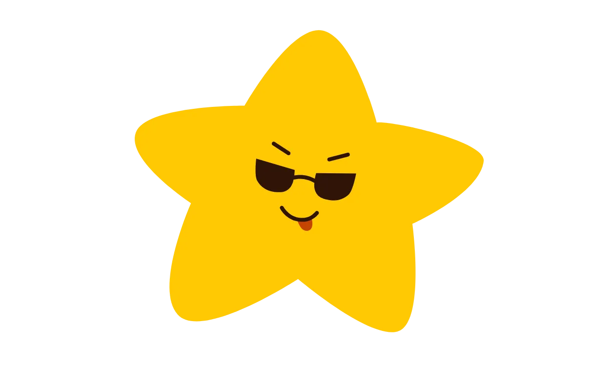 Kombinasi dari warna kuning yang cerah, kacamata sebagai aksesori, dan ekspresi wajah yang cool dapat menciptakan kesan tampilan gambar kartun bintang yang keren dan menyenangkan. Gambar tersebut dapat menjadi pilihan yang menarik dan menghibur sebagai hiasan atau dekorasi dalam berbagai media atau sebagai elemen desain yang menonjol dalam proyek kreatif.