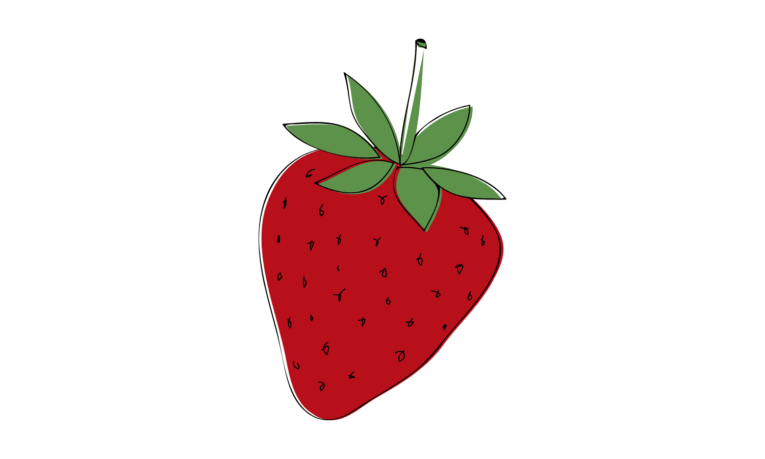 Warna merah cerah pada buah strawberry dapat memberikan kesan yang menyegarkan dan menggugah selera. Ditambahkan dengan detail seperti daun hijau yang melengkung di bagian atas buah, gambar kartun strawberry akan terlihat lebih hidup dan alami.