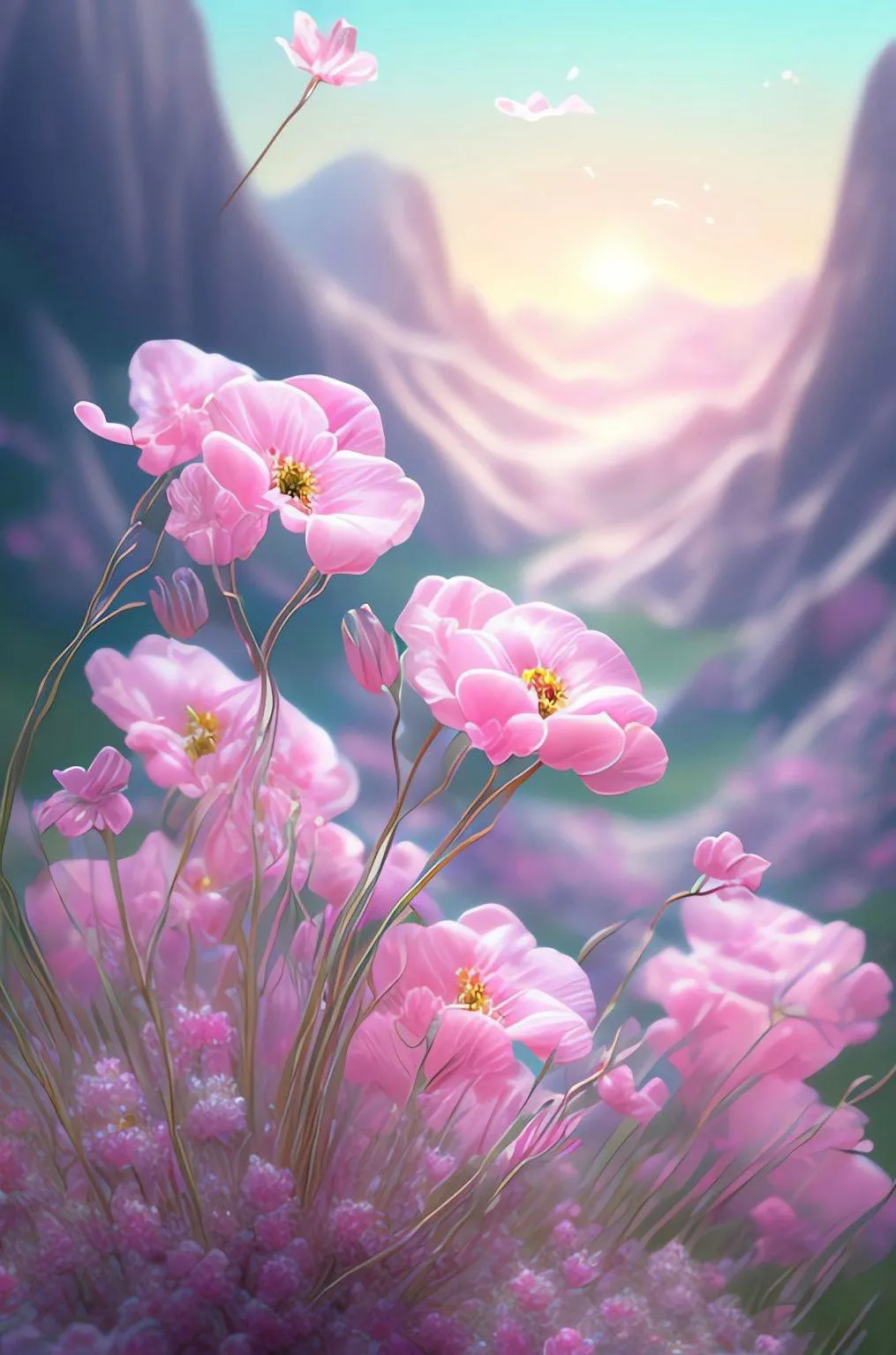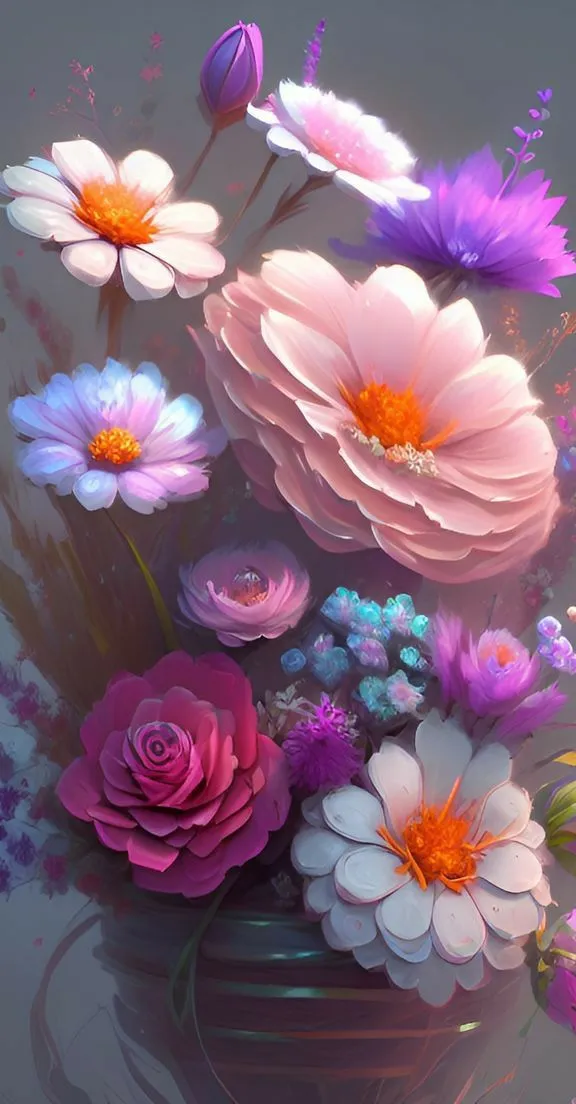 Seperti mawar yang memiliki kelopak yang lembut dengan warna-warna yang berbeda-beda, dan anemone dengan kelopak yang menghadap ke atas dan memiliki warna yang sangat cerah dan mencolok. Kedua jenis bunga ini dapat memberikan kesan kecantikan alami dan mengagumkan pada gambar yang menampilkannya.