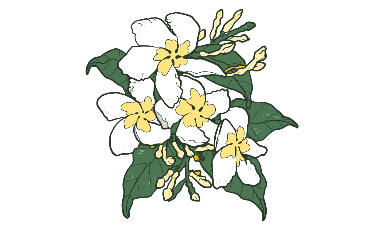 Gambar sketsa bunga melati dapat memberikan kesan elegan, indah, dan memikat. Bentuk melati yang melengkung dengan daun-daun yang menyertainya memberikan kesan yang lembut dan anggun. Sketsa hitam putih bunga melati juga dapat memberikan kesan dramatis dan fokus pada detail-detail dari bunga tersebut. Sketsa bunga melati dapat menjadi referensi yang baik untuk mengasah kemampuan menggambar objek dengan detail yang halus.