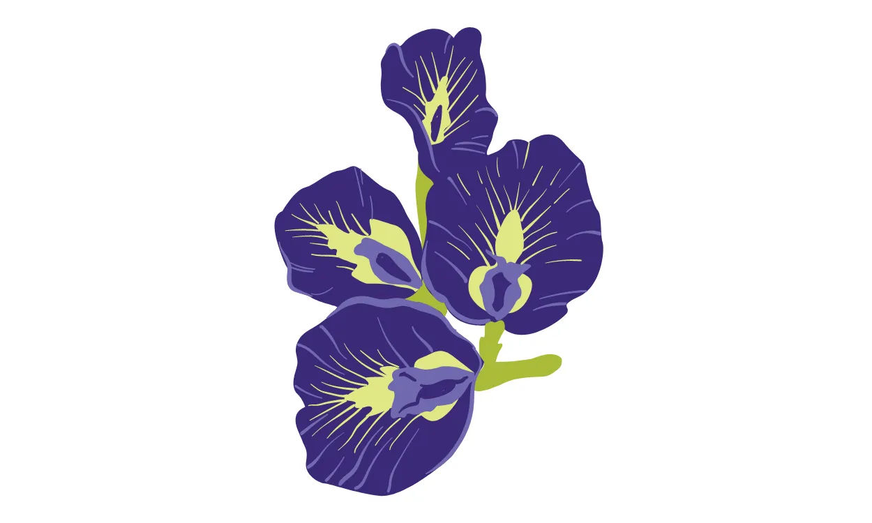 Gambar kartun bunga Kembang Telang warna ungu memberikan kesan yang menenangkan dan indah. Warna ungu yang kuat pada bunga dan daunnya memberikan kontras yang menarik dan membuat bunga tersebut terlihat sangat menonjol. Karena kembang telang sering kali dihubungkan dengan kedamaian dan kesegaran, gambar ini bisa memberikan kesan damai dan menyejukkan bagi yang melihatnya.