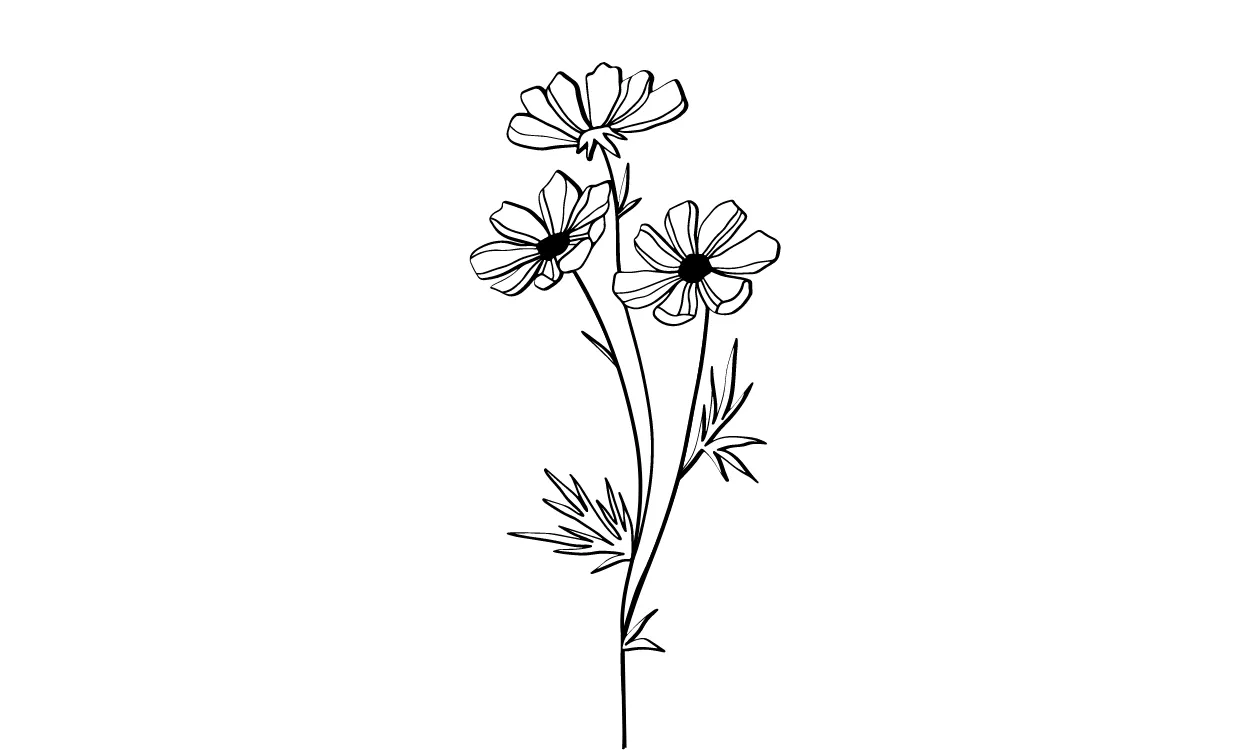 Bunga kosmos umumnya memiliki bentuk bunga yang indah dan menarik, dengan kelopak bunga yang berwarna-warni dan bermotif polkadot. Bunga ini memberikan kesan yang ceria, segar, dan menenangkan. Gambar sketsa bunga kosmos dapat memberikan kesan yang artistik dan elegan, terutama jika digambar dengan detail yang baik. Selain itu, sketsa bunga kosmos juga dapat memberikan kesan romantis, tergantung pada bagaimana gambar tersebut digambarkan dan diwarnai. Sketsa bunga kosmos bisa menjadi pilihan yang tepat untuk dijadikan dekorasi atau hadiah bagi orang yang kamu sayangi.