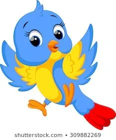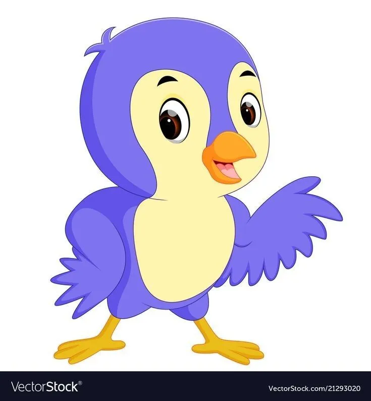 Burung kecil dalam gambar kartun ini dapat memiliki bentuk tubuh yang menggemaskan, dengan mata besar dan bulu yang lembut. Ekspresi di wajahnya bisa mencerminkan keceriaan dan kepolosan yang khas. Mungkin ada juga elemen desain seperti hiasan di kepala atau sayap yang menambahkan pesona visual pada burung tersebut.