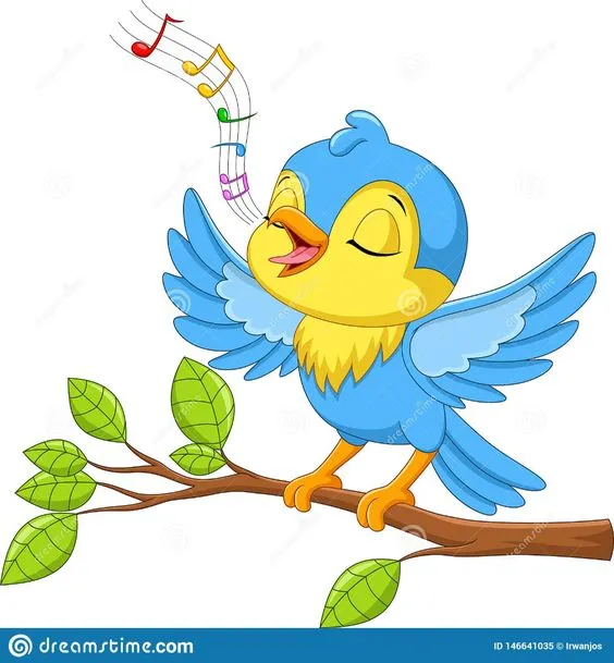 Pada gambar kartun tersebut, burung kecil sedang berkicau di atas ranting pohon, sehingga dapat digambarkan dengan pose yang aktif dan dinamis. Mungkin burung kecil tersebut sedang melambaikan sayapnya atau mengangkat kepala dengan antusias saat berkicau.