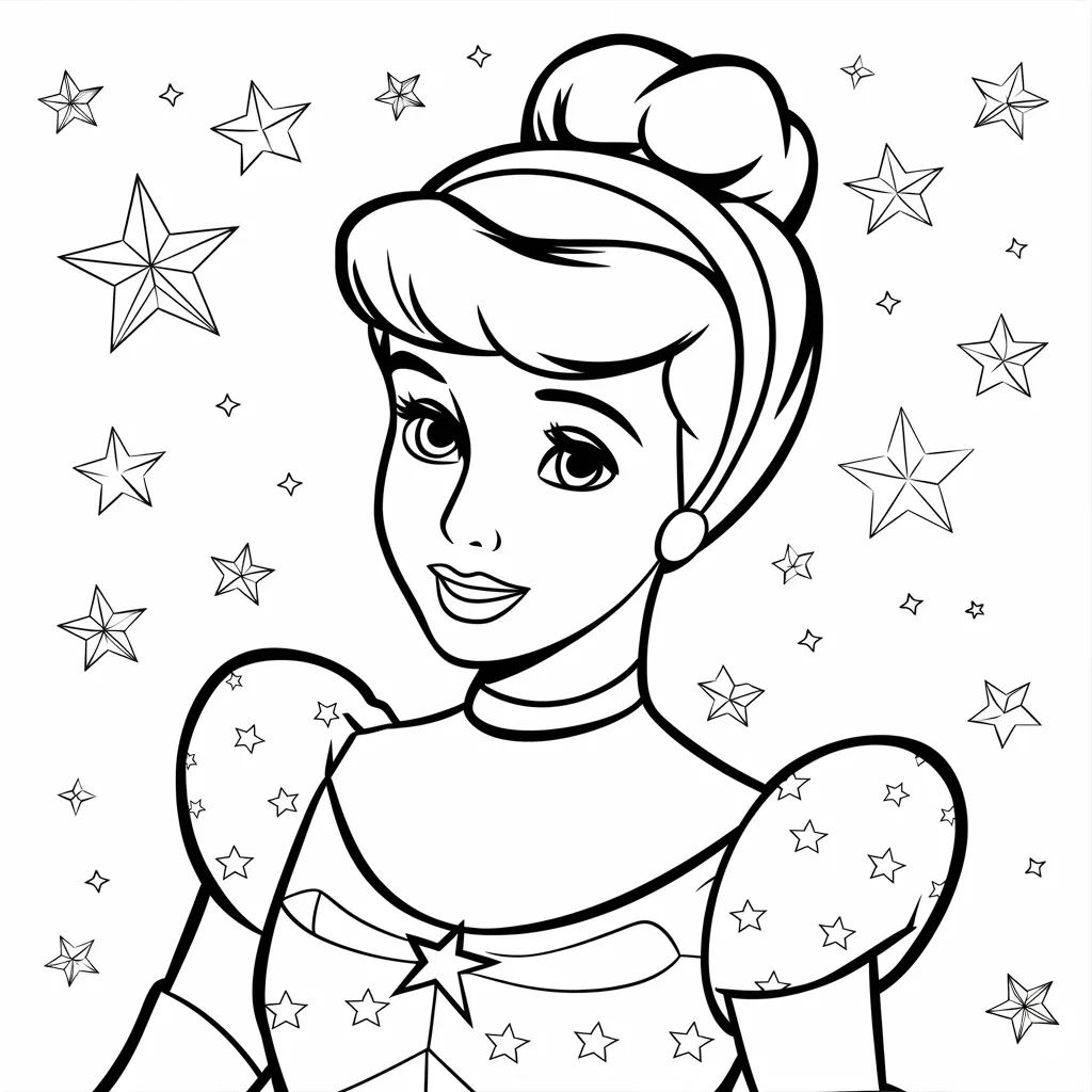 Ilustrasi Cinderella di bawah langit malam berbintang, menambah nuansa magis.