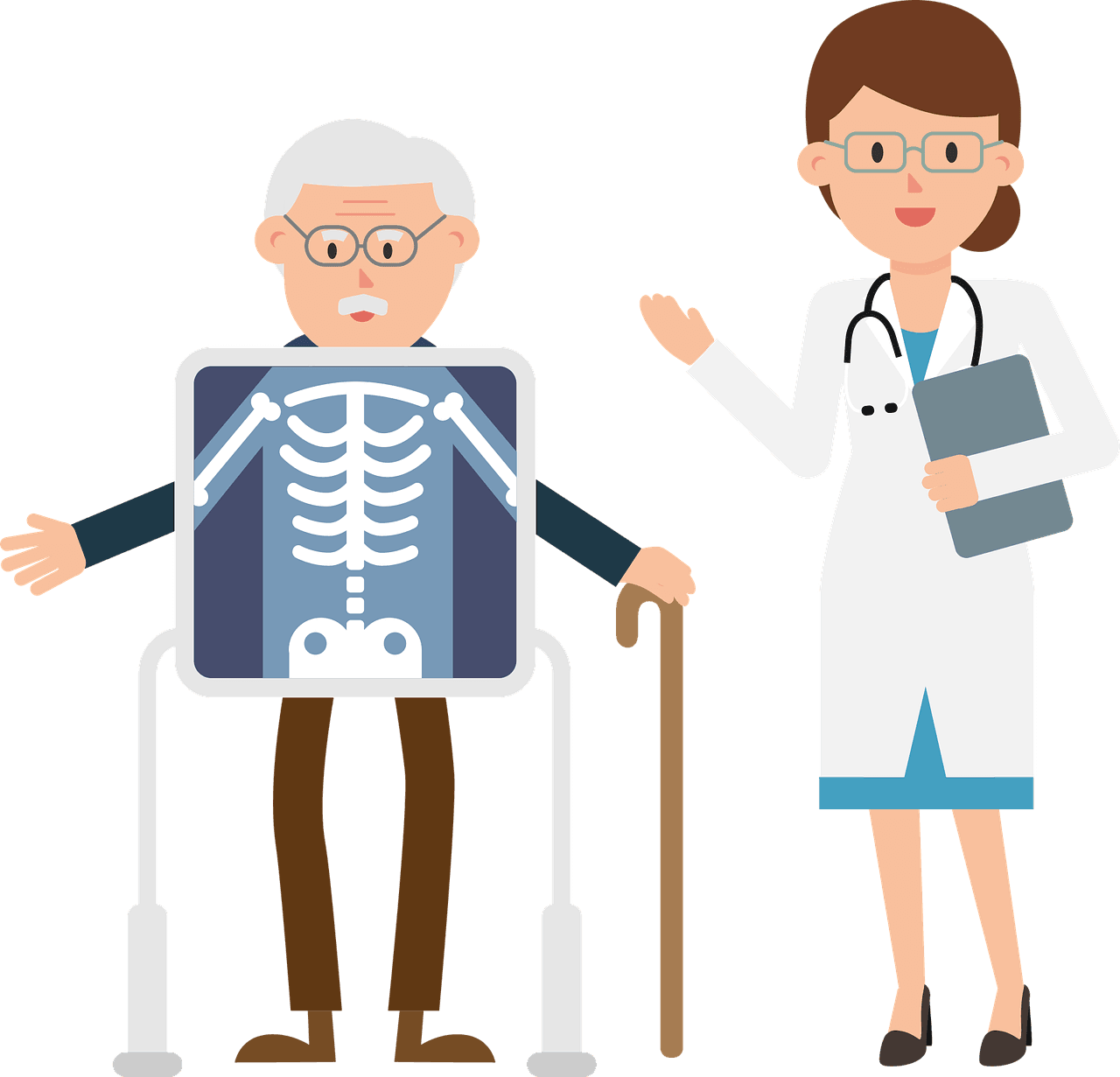 Senyuman ceria dari dokter pria dan wanita menunjukkan sikap ramah dan perhatian terhadap pasien. Ini mencerminkan keinginan mereka untuk menciptakan lingkungan yang nyaman dan membangun hubungan yang baik dengan pasien.