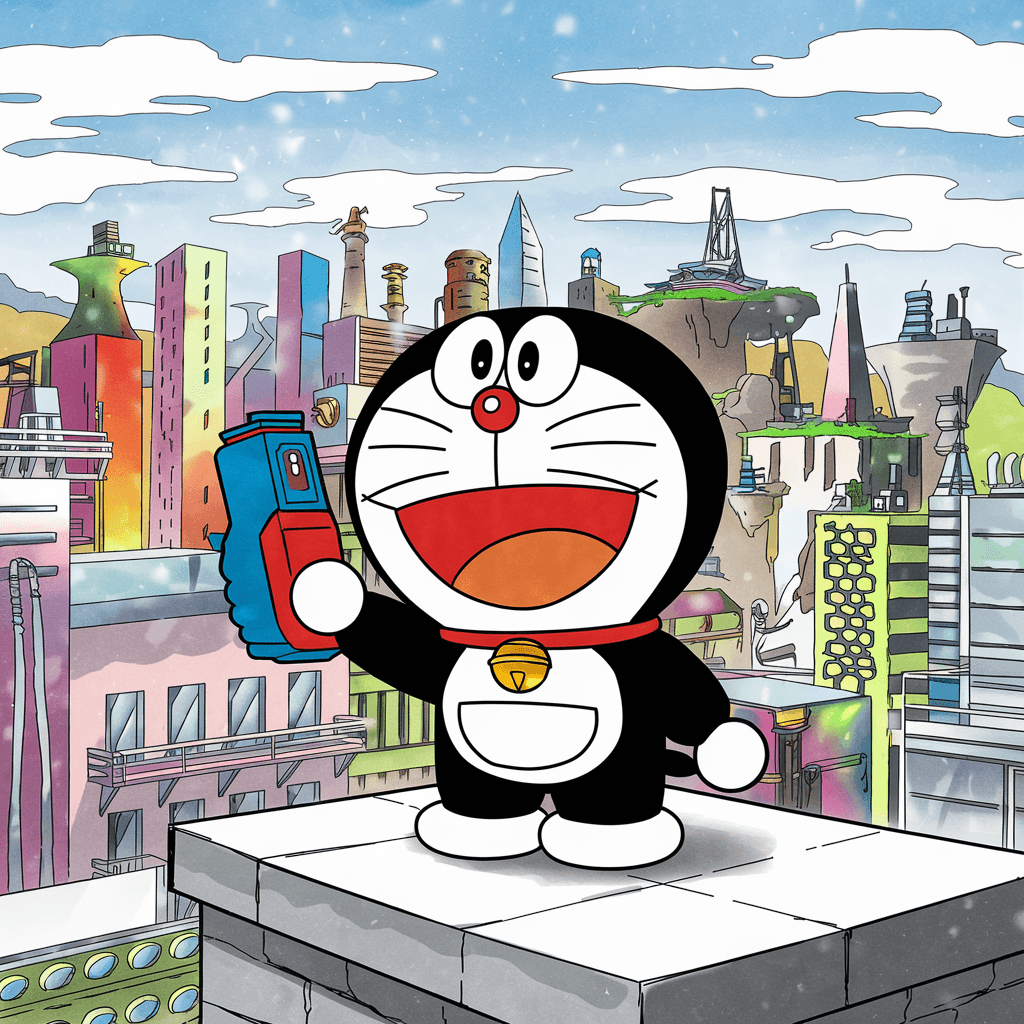 19. Doraemon di Pemandangan Kota Penuh Warna