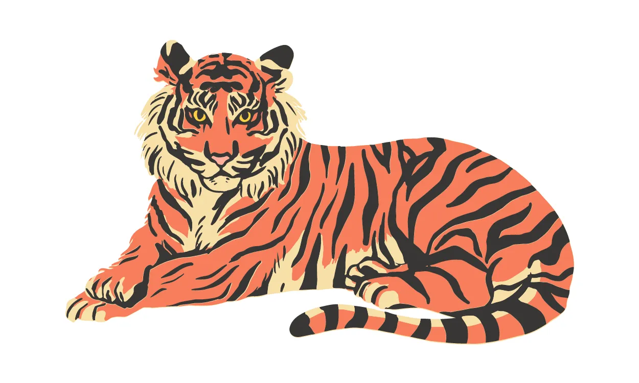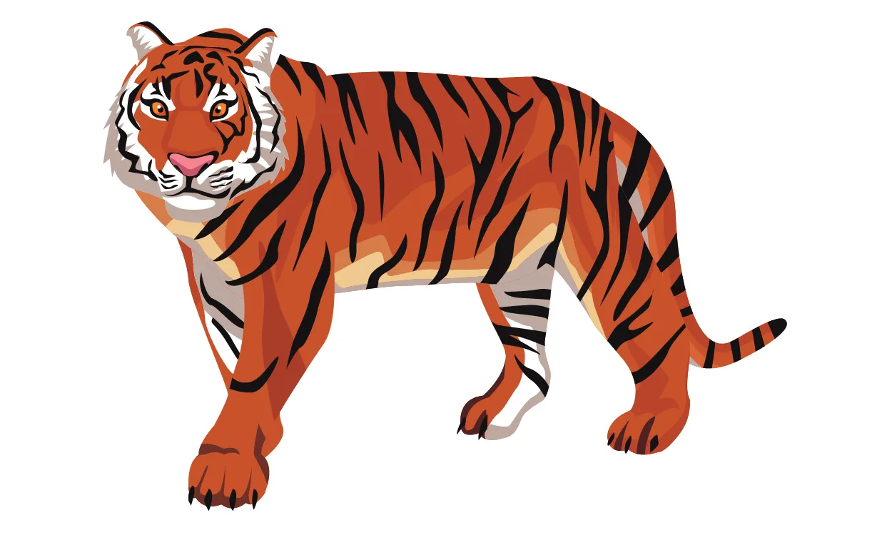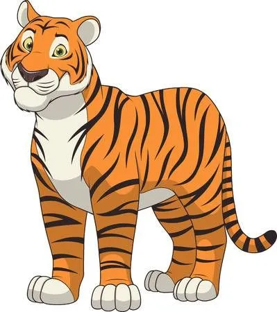 Harimau jantan dewasa memiliki kepercayaan diri yang tinggi. Dalam gambar kartun, ekspresi yang menunjukkan kepercayaan diri, misalnya dengan senyuman atau sikap yang santai, dapat menambahkan kesan gagah pada gambar tersebut.
