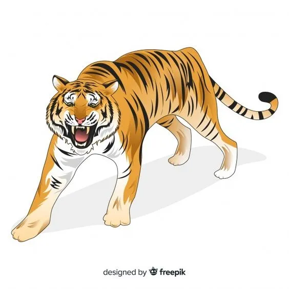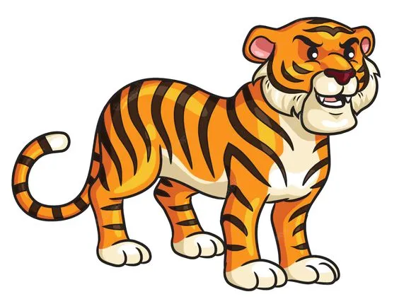 Gambar kartun harimau dewasa yang digambarkan dengan postur tegap, otot-otot yang terdefinisi, dan tatapan tajam dapat memberikan kesan kekuatan dan keberanian. Harimau dewasa sering kali digambarkan sebagai simbol kekuatan dan dominasi dalam dunia hewan.