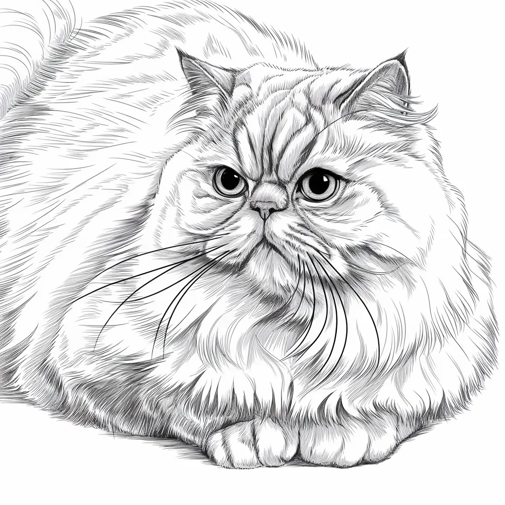 Gambar kucing Persia dengan bulu yang tebal dan panjang, menonjolkan sudut pandang dan keindahan ras tersebut.