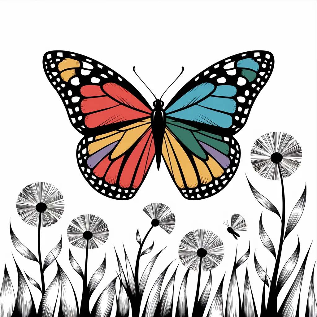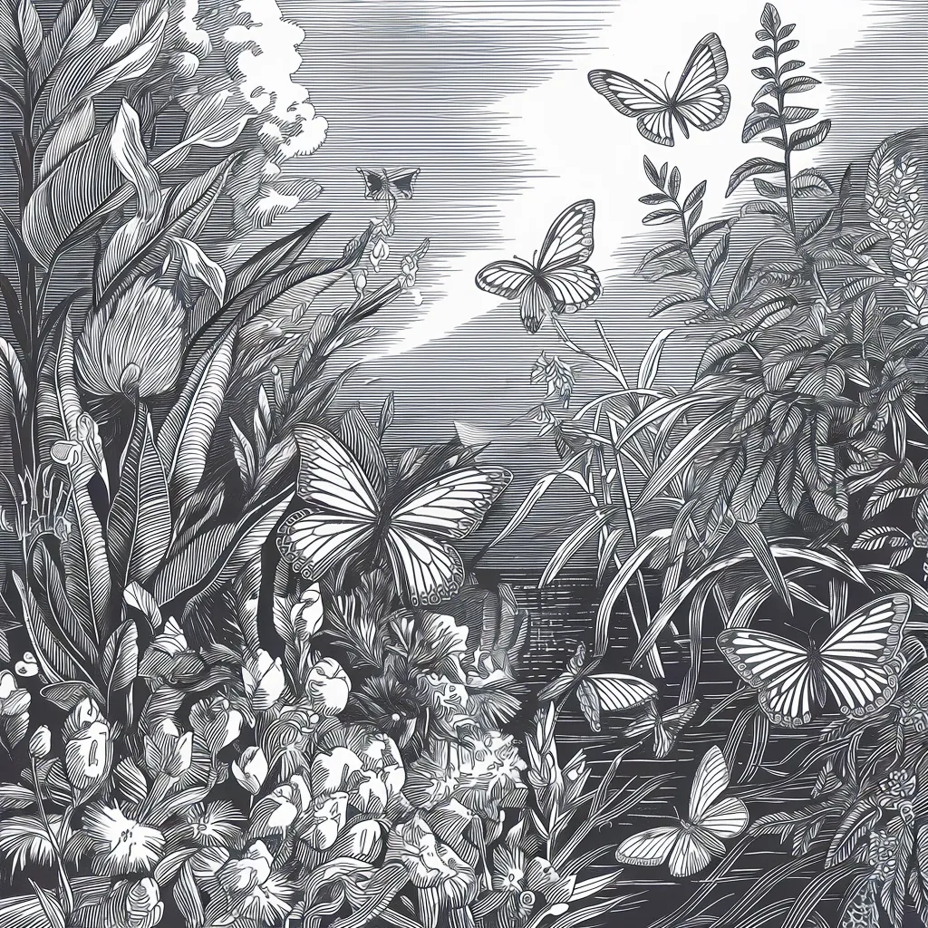 Ilustrasi kupu-kupu dengan sayap yang diarsir secara detail, menonjolkan pola dan simetri yang indah.