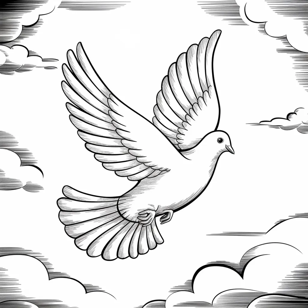 Gambar burung merpati yang sedang terbang dengan sayap terbuka, menonjolkan garis sayap yang elegan dan detail bulu yang halus.