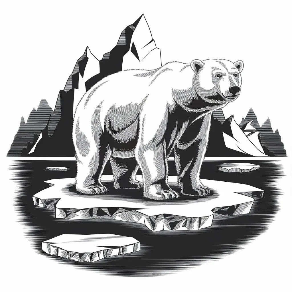 Ilustrasi beruang kutub yang berdiri di atas pulau es, menampilkan adaptasi mereka terhadap lingkungan yang dingin.