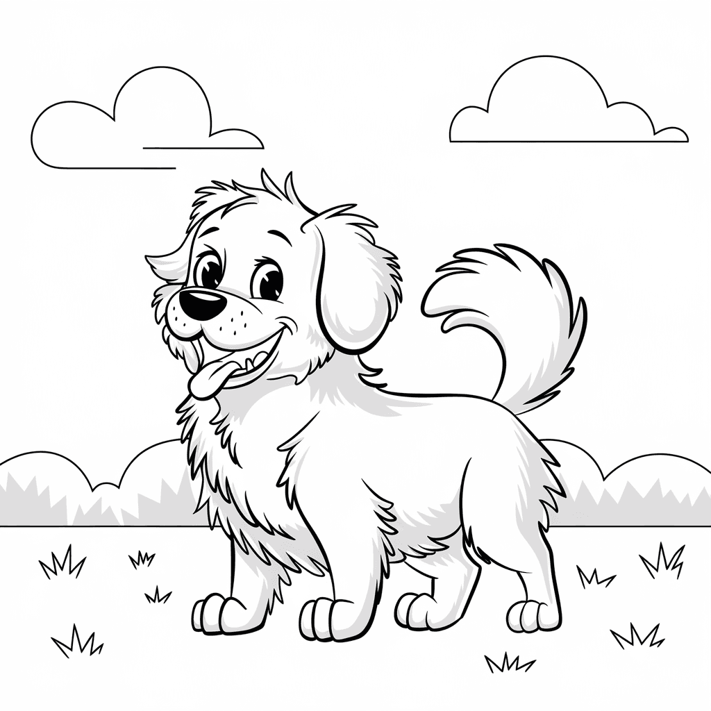 Anjing dengan ekor bergoyang, siap diajak bermain.
