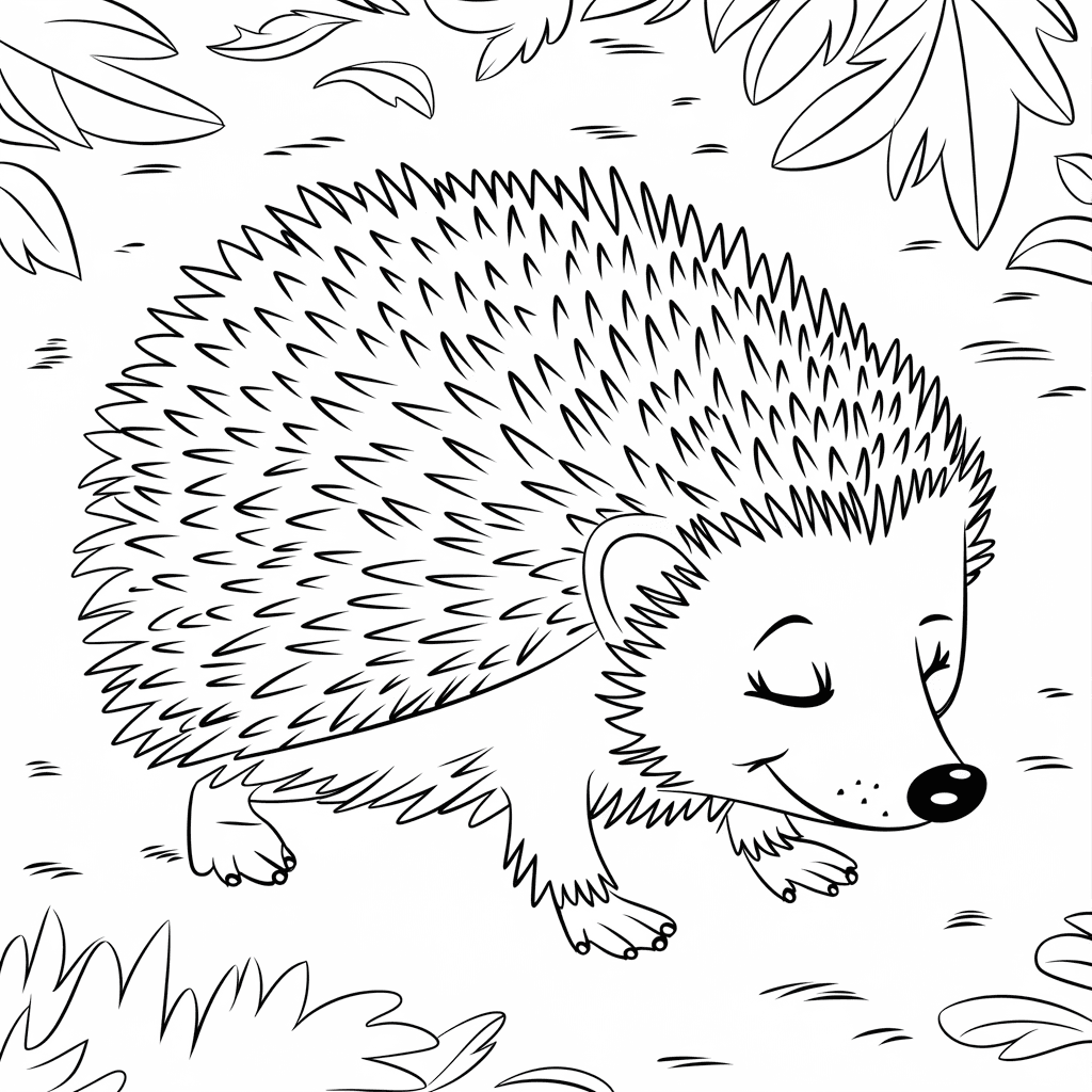 Landak dengan duri tajam, berjalan di lantai hutan.